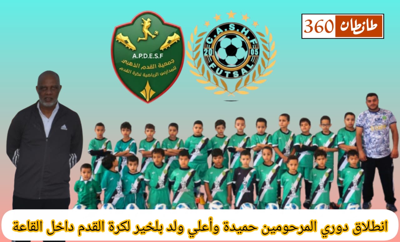 في مبادرة رياضية ذات بعد إنساني عميق تنظم مدرسة القدم الذهبي لكرة القدم داخل القاعة بشراكة مع نادي أشبال الساقية الحمراء لكرة القدم داخل القاعة دوري المرحومين حميدة وأعلي ولد بلخير وذلك طيلة أيام الشهر الفضيل في نسدوري المرحومين حميدة وأعلي ولد بلخير حدث رمضاني يجمع الرياضة بالقيم الإنسانية.خته الأولى الخاصة بالفئات الصغرى وسط أجواء يسودها التنافس الشريف وروح الأخوة