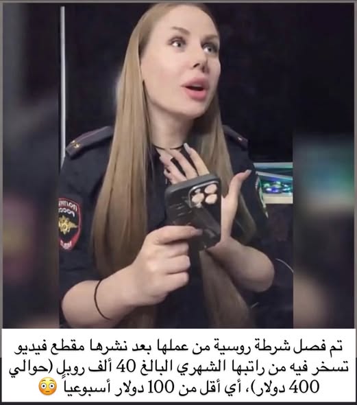 تم فصل الشرطية الروسية الشابة أولغا غايدوكوفا من عملها بعد نشرها مقطع فيديو قصير (Reel) على إنستغرام تسخر فيه من راتبها الشهري البالغ 40 ألف روبل (حوالي 400 دولار)، أي أقل من 100 دولار أسبوعياً!