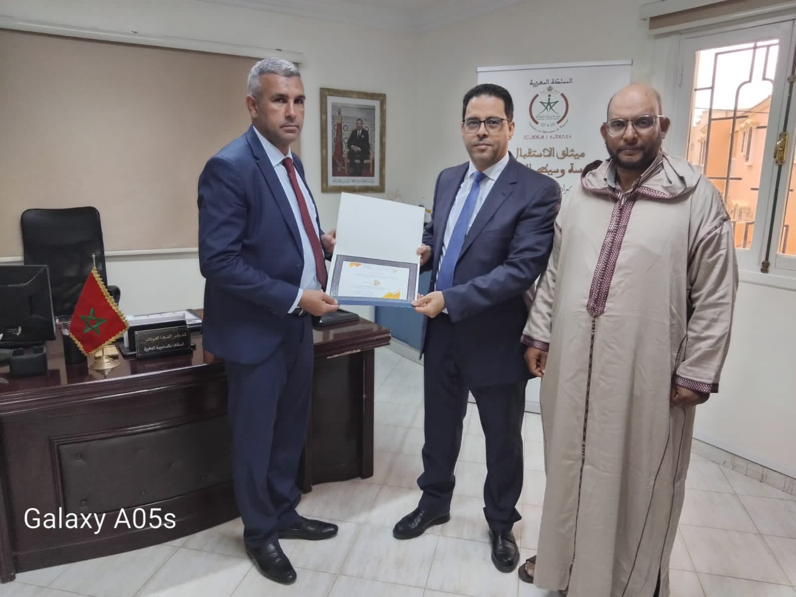و قد قام السيد صلاحي السويدي رئيس منتدى الصحراء للحوار و الثقافات عضو لجنة الإشراف للحكومة المنفتحة، بتقديم شهادة شكر و تقدير للسيد الشريف لعروصي عرفانا بالمجهودات التي تبذلها مؤسسة وسيط المملكة بجهة العيون الساقية الحمراء، متمنيا له النجاح و التوفيق في مهامه خدمة للصالح العام تحت القيادة الرشيدة لصاحب الجلالة الملك محمد السادس نصره الله و أيده.