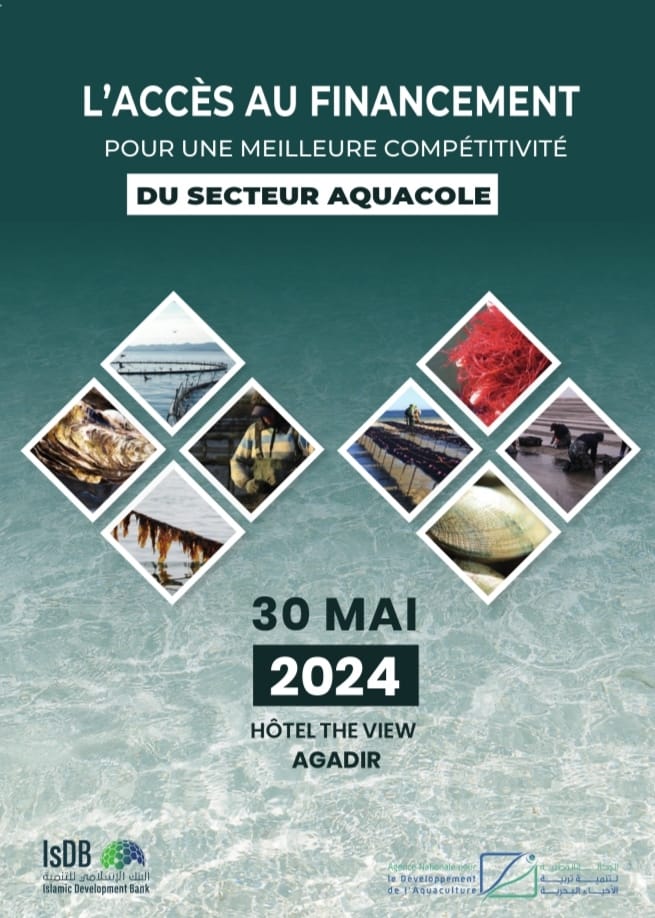 Le 30 mai 2024 à Agadir, un séminaire dédié aux initiatives de financement du secteur aquacole est organisé par l’Agence Nationale pour le Développement de l’Aquaculture (ANDA) en partenariat avec la Banque Islamique de Développement, sous le thème « l’accès au financement pour une meilleure compétitivité du secteur aquacole ».