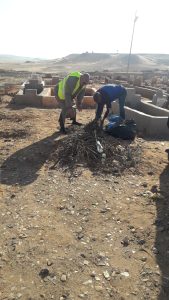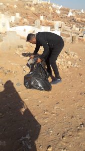 قام المتطوعون ابتداء من الساعة الثالثة زوالا ، بجمع النفايات المتراكمة داخل المقبرة بالإضافة إلى تنظيف الممرات وإزالة النباتات التي كانت تغطي القبور.