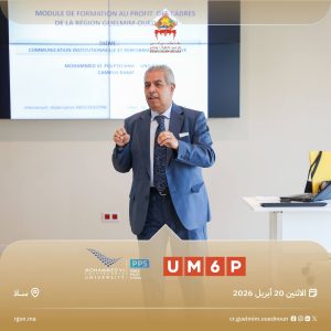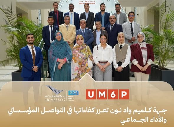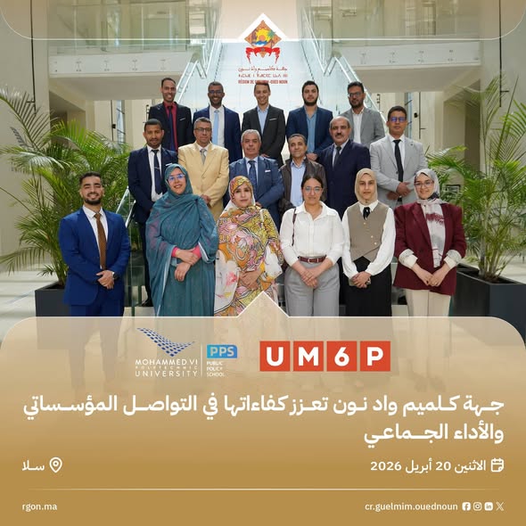 في إطار تفعيل اتفاقية الشراكة رقم 16/2024، الموقعة بين مجلس جهة كلميم واد نون وكلية الحكامة والعلوم الاقتصادية والاجتماعية التابعة لجامعة محمد السادس متعددة التخصصات التقنية، احتضنت هذه الأخيرة، يومي 20 و21 أبريل 2026، دورة تكوينية لفائدة أطر وموظفي الجهة، تمحورت حول موضوع: «التواصل المؤسساتي والأداء الجماعي»، من تأطير الأستاذ عبد الرحيم أبو تاج الدين.